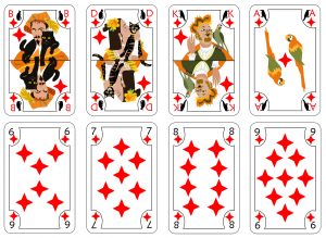 52 originelle Spielkarten – man könnte sie für ein normales Whist-Spiel halten – wären da nicht noch 4 Joker und 52 Tiere, die den Spielverlauf ordentlich durcheinander wirbeln.