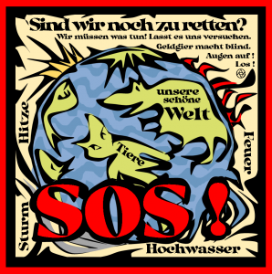 Hitze, Sturm, Feuer, Hochwasser! Geldgier macht blind und blöd! Wir müssen was tun! Lasst es uns versuchen. Augen auf! Los!